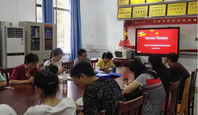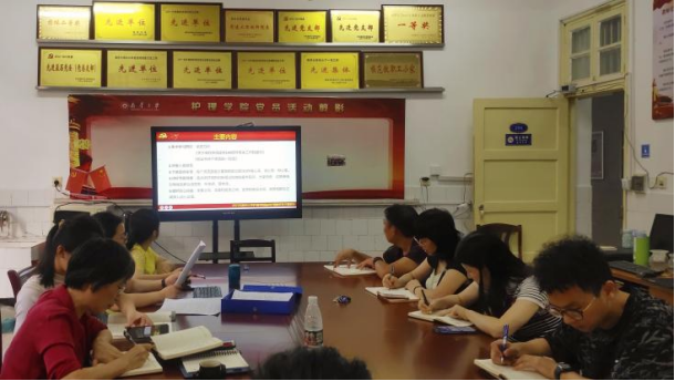 2021年6月23日,太阳集团tcy8722临床护理教研室党支部在学院党员活动室开展了“党旗在基层一线高高飘扬”主题党日活动。太阳集团tcy8722党委组织委员刘和福、副院长曾谷清、党支部书记李健芝、临床护理教研室全体教职工及研究生同学参加会议。党支部书记李健芝主持会议。