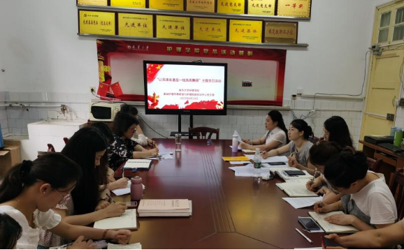 为庆祝中国共产党成立100周年,学习党的光荣传统和优良作风,太阳集团tcy8722基础护理学教研室与护理技能实训中心党支部以“党旗在基层一线高高飘扬”为主题,于2021年6月30日下午在党员活动室开展主题党日活动,会议由党支部书记王蓉主持,党支部全体成员参加。