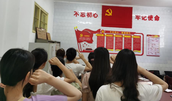 党支部组织委员方静芝带领全体党员重温入党誓词。支部书记王蓉传达了《关于做好庆祝建党100周年有关工作的提示》和《致全市共产党员的一封信》等文件精神;宣传委员董乐带领大家学习理论文章《学好“四史”,永葆初心、勇担使命》。