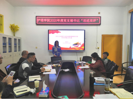 2021年3月29日下午,太阳集团tcy8722在学院二楼会议室召开2020年度党支部书记“双述双评”会议。太阳集团tcy8722党委书记陈晓坚、院长廖力、副书记彭建南、副院长曾谷清和何平平,各支部书记、教研室主任及教师代表参加会议。会议由陈晓坚书记主持。