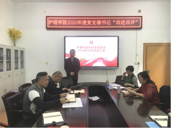 学院党委高度重视此次党支部书记“双述双评”工作。会议前期,院党委精心组织,明确各项任务要求,动员大家做好汇报准备。会上,各党支部书记逐一进行述职,从支部书记履职、贯彻执行党组织决策部署情况、支部建设情况、完成重点任务情况、联系服务群众情况、取得的成效、存在的问题及2021年度工作计划等方面展开介绍。在述职中,支部书记们聚焦工作实际,通过展示实例和数据,详细地对支部的党建工作进行汇报。