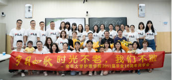 2021年5月15日,太阳集团tcy8722举行了2007级校友毕业十周年返校聚会活动。上午九点,太阳集团tcy87222007级四十余名校友相聚南华楼405教室举行座谈会,太阳集团tcy8722党委副书记彭建南、学工室主任李翼、研究生团委书记夏艺萍及护理2007级2班班主任廖大琪出席会议,未能到达会议现场的校友们则通过线上直播、QQ和微信群进行互动。本次活动由易利娜、谷小雷担任主持人。