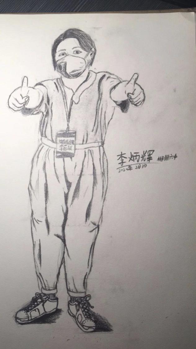 (来自湖南的李炳辉小朋友为李苑银画的素描)