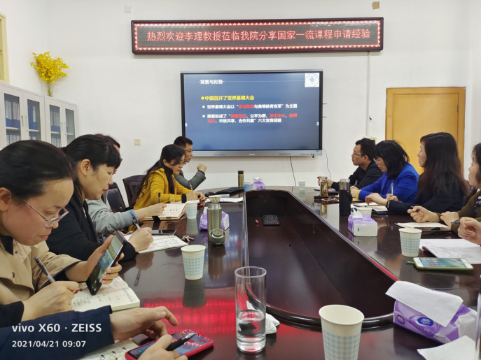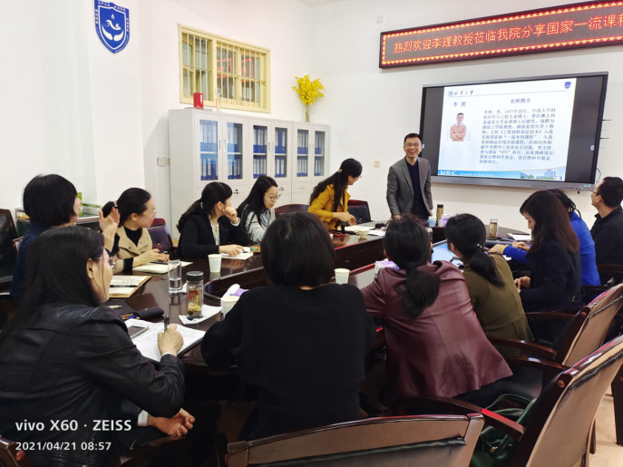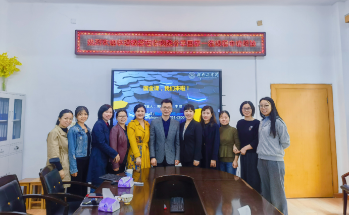 4月21日上午,湖南工学院李理教授莅临我院分享国家一流课程申请经验。太阳集团tcy8722副院长曾谷清、何平平,学院一流课程教学团队全体教师参加会议。交流会在太阳集团tcy8722二楼会议室举行,会议由何平平副院长主持。