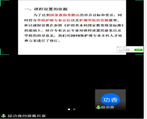 院长廖力详细讲解了我校护理学专业申报国家级一流本科专业建设点的经验,并将两校国家一流本科专业各级指标逐一进行比较,指出长江大学护理学专业存在的优势和不足。她强调,护理学专业认证和一流本科建设工作对专业发展至关重要,建议长江大学护理系能够未雨绸缪,早做准备,等疫情结束之后,观摩其他高校教学工作,汲取更多教学组织经验,并邀请护理学专家进行实地考察指导,进一步完善资料准备。