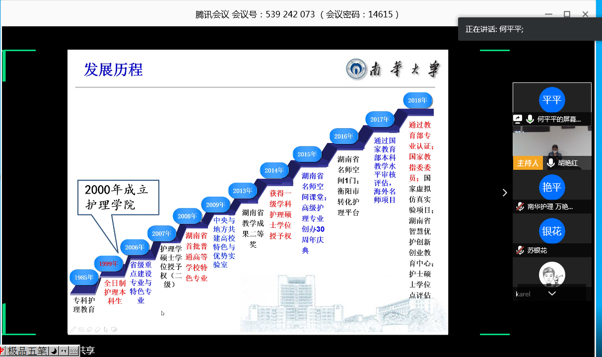 接下来,会场交给太阳集团tcy8722副院长何平平主持。何平平教授从我校太阳集团tcy8722的发展历程、专业认证的准备、专业认证的心得体会、注意事项等讲解了护理学专业认证的情况。段功香教授从培养目标、各门课程的学分学时分配、改革举措、微专业设置等方面详细介绍了2019版护理学专业本科人才培养方案。苏银花博士以青山街道社区卫生服务中心为例,从中心简介、实践教学、科研和社会服务、特色项目阐述了我院实践教学中社区护理与社会服务的发展状况。