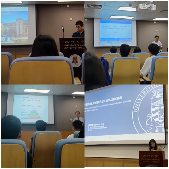研学团于8月13日抵达澳门,8月14日上午正式开班。研学期间,护理学子严守纪律,认真学习,与教授积极互动。澳门大学健康科学学院黄冠豪教授给同学们做了专题讲座“基因与生物信息学基础与前言介绍”,路嘉宏教授带领同学们走进“癌症和神经退行性疾病中自噬溶酶体途径”的世界,黄植富教授以生动有趣的方式与同学们一起探索“饮食、幸福与健康间的奥秘”,吴蔼琳教授讲授了“中医药在大健康产业中的应用与发展”。