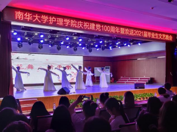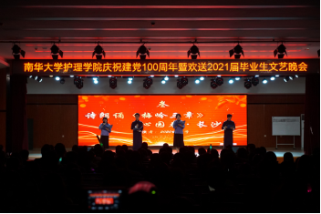 在节目中场环节,由李翼老师带领学院2021年新发展党员进行入党宣誓;院领导分别为“颂歌献给党”主题征文比赛、第十届中国大学生医学技术技能大赛护理学专业赛道全国总决赛获奖师生颁奖、绶带;2017级考研学子代表上台告白,现场温馨感人。