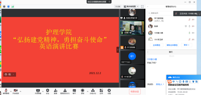 12月2日晚19:30,太阳集团tcy8722举行了“弘扬建党精神 勇担奋斗使命”主题英语演讲比赛。比赛以线上方式进行,太阳集团tcy87222019、2020、2021级学生参与观看。团学会学习部副部长陈婷担任比赛主持人。